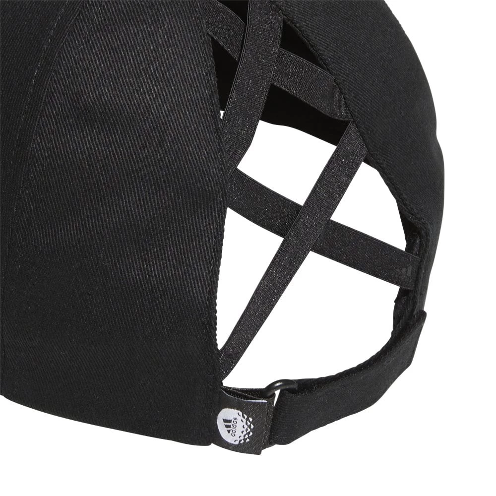 Style and function for the win. This adidas golf hat features a crisscross elastic back made for sliding your ponytail through. Adjust the strap for a custom fit. The cotton twill construction delivers all-day comfort. Our cotton products support more sustainable cotton farming.
