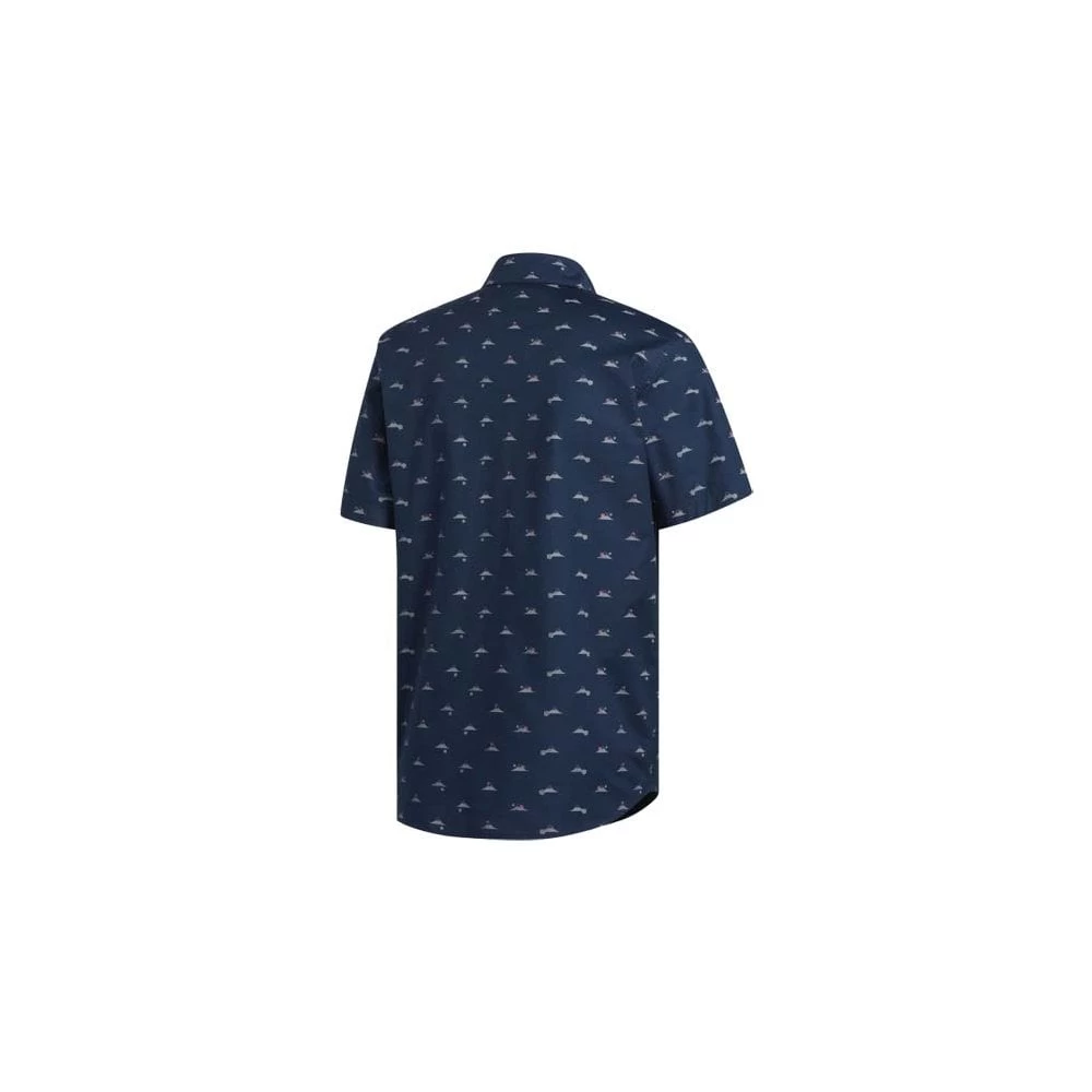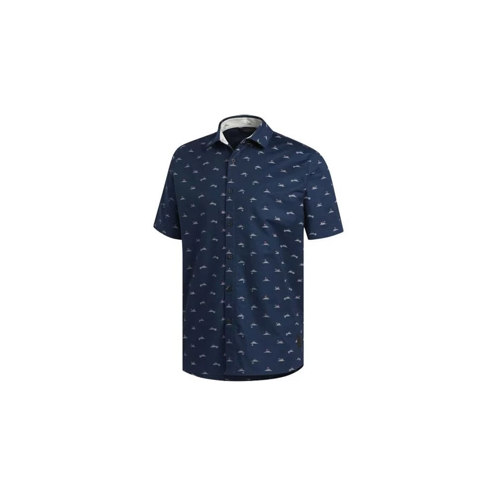 A rounded hem and all over print lend a lifestyle feel for easy transitions off the course.