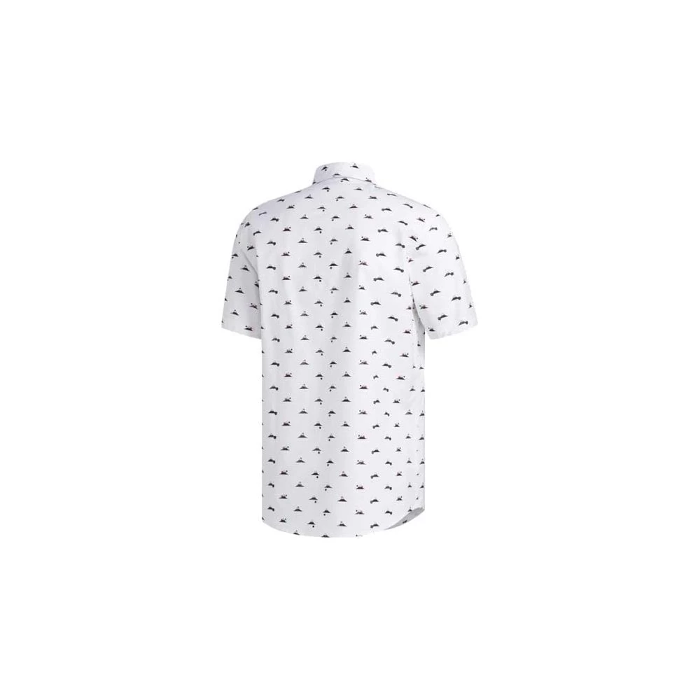 A rounded hem and all over print lend a lifestyle feel for easy transitions off the course.