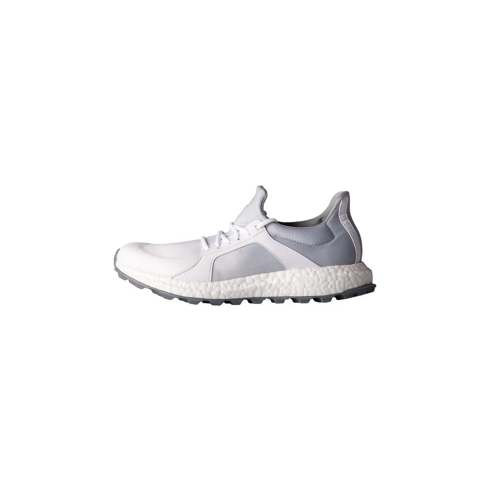 The adidas Womens ClimaCross Boost Golf Shoes White/Onix/Silver features a full-length Boost midsole for insane comfort and cushioning. The stretch textile uppers are incredibly breathable and are ideal for on-or-off the course wear. The PureMotion outsole features deeper grooves for increased flexibility for maximum comfort during your swing. Full-length Boost midsole foam Stretch textile mesh uppers PureMotion rubber outsole CloudFoam sockliner Torsion system for added stability Adiwear traxion system