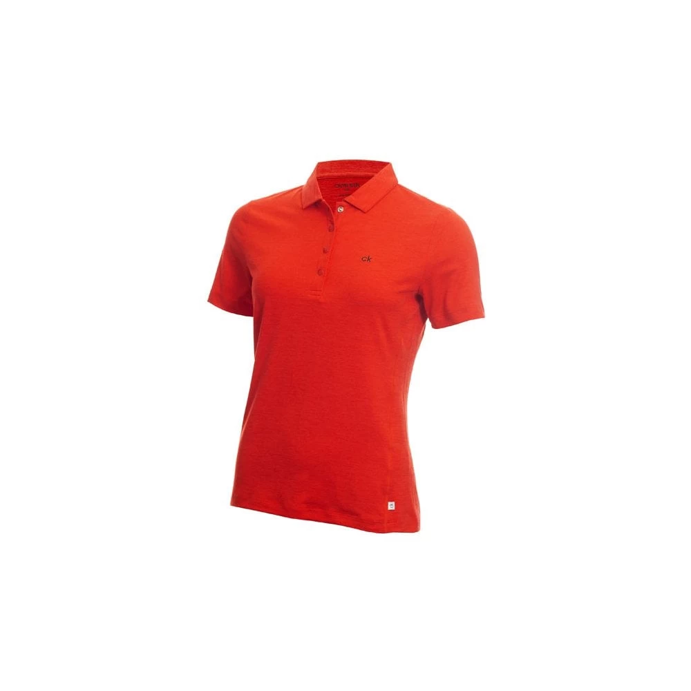 Exceptionally chic high performing polo shirt from Calvin Klein golf with self-fabric collar and flattering front and back styles lines for a feminine shape. The smooth and super soft marl fabric is a joy to wear and play in.