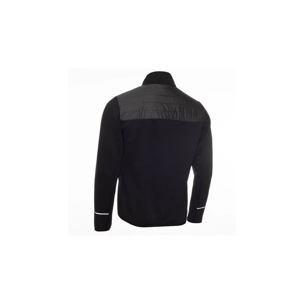 Full zip jacket with quilted front and top of back paired cosy stretch fabric panels and sleeves