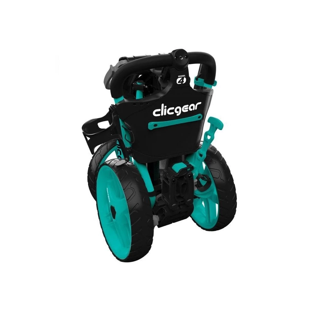 The Clicgear Model 4.0 is the latest update of our very successful three wheel golf pushcart design. We have added several improvements to the original design to make this the best model ever. These include New console lock, adjustable upper saddle, silicone straps, adjustable front wheel, umbrella tube strap, improved scorecard & pencil holder.