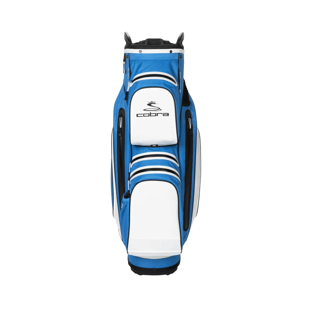 The ULTRADRY Pro Cart Bag is perfect for all weather conditions. The 15-way top with an external putter is paired with a car strap pass-through allowing access to every pocket while on a cart.