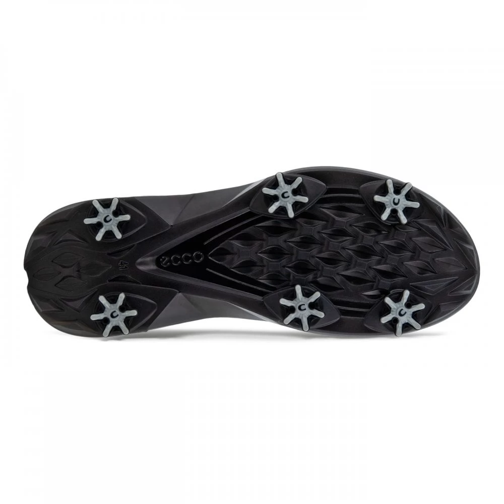 Advanced, athletic performance is mixed with sporty, progressive design with the new ECCO GOLF BIOM G5. The next generation of the BIOM G3 is equipped with ZARMA-TOUR spikes, which are combined with innovative hybrid sections of the outsole for outstanding traction and stability. You will move more naturally thanks to the updated BIOM last, which also provides support, stability and a snug fit, while the ECCO FLUIDFORM Direct Comfort Technology ensures a modern balance of cushioning and rebound and the GORE-TEX technology offers 100 per cent waterproof protection. Embossed ECCO Performance Leather and a sporty mesh elevate the modern, athletic design.