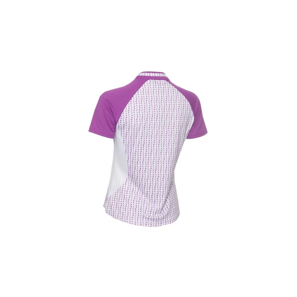 Super smart with a sporty vibe the Emily polo from Green Lamb features an attractive print and solid colour design with shaped side panels and raglan sleeves for a truly flattering silhouette. Made from a Quick Dry performance fabrication to keep you cool and dry. Recycled polyester is a greener choice for the environment.