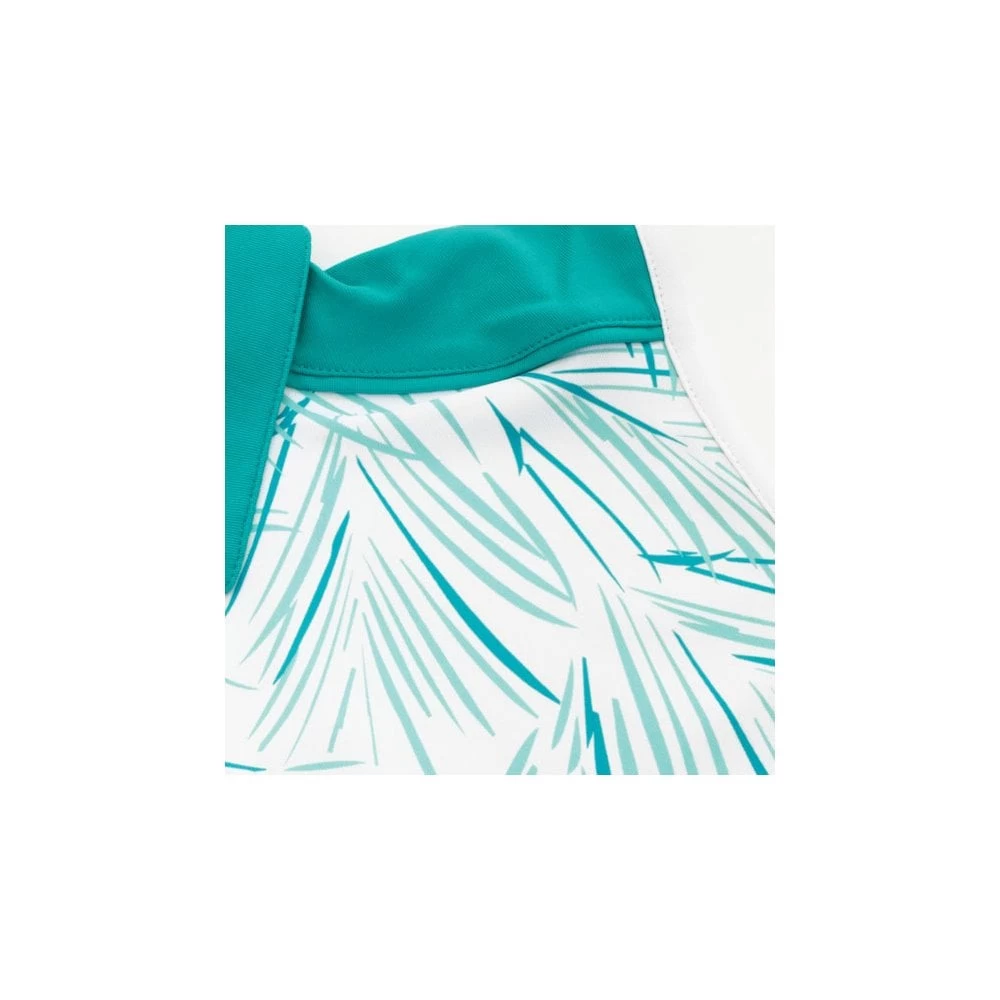 The stunning printed front of the Enid Sleeveless Polo is a knockout both on and off the course. Contrasting trims throughout and curved back yoke piping make for a dynamic looking polo. The quick dry performance jersey fabrication boasts UV protection (50+), and recycled polyester is the smart choice for you and the environment.