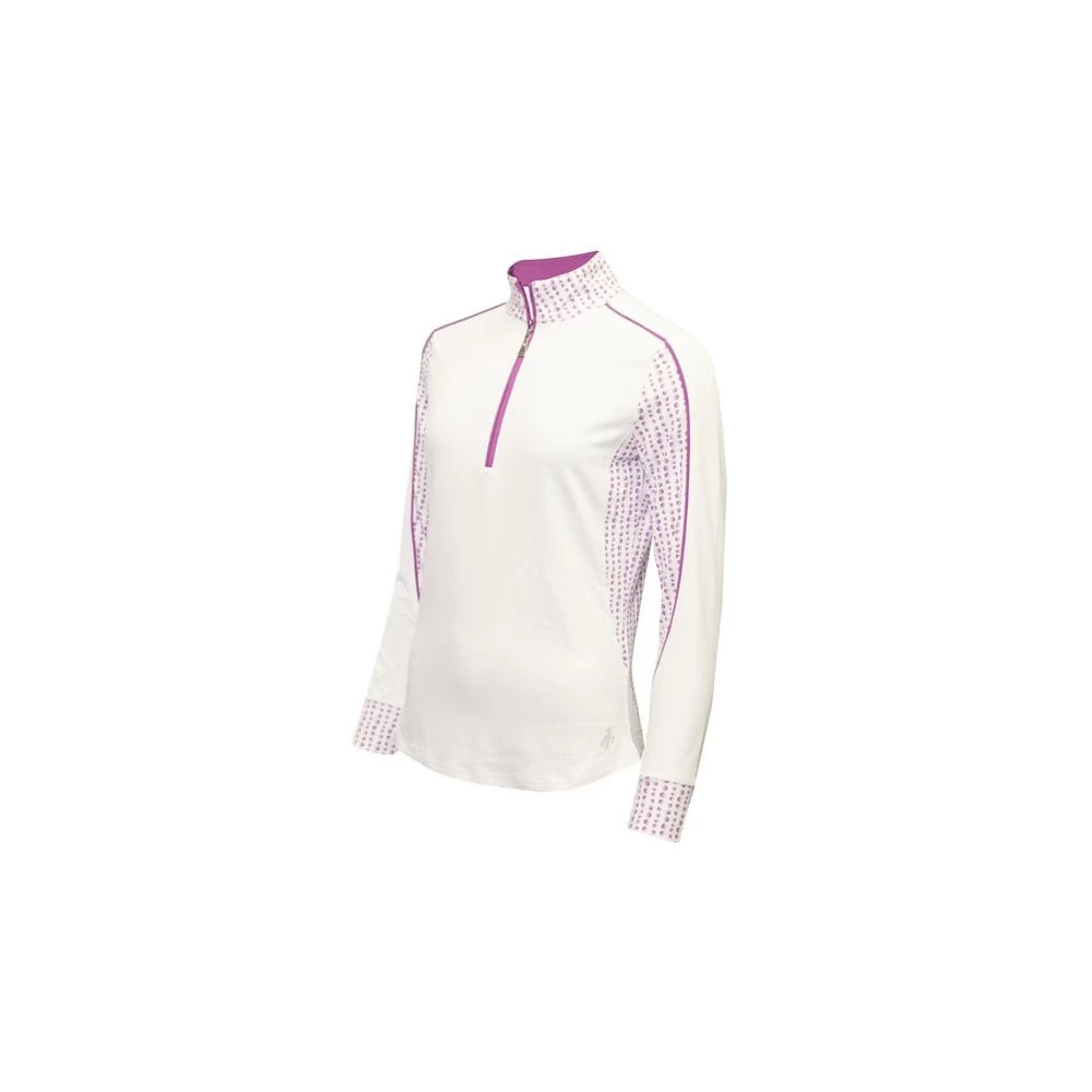 The dynamic design of the Eva top will elevate your mood whatever the weather. A striking mix of solid and printed panels it features a long silver zip neckline, contoured panels at the sides and on the sleeves that achieve a sleek silhouette. The lightweight fabric is breathable, and moisture-wicking and the added stretch ensures a comfortable fit that allows for full range of motion. Recycled polyester is the better choice for the environment.