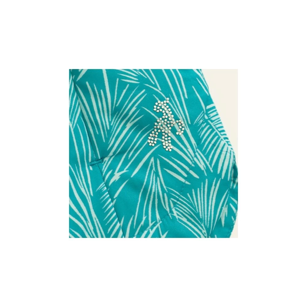 Add a stylish yet practical warming layer with the Kathleen padded gilet showcasing a vibrant all-over print adding brightness to your day. Lightly padded it features attractive quilted panels at the top with a water-resistant finish to keep you playing in comfort. Front and back style lines make for a flattering silhouette. Product Features: Full zip gilet with quilted panels on top front and back Thermo windbarrier fabric that is lightly padded and water repellent Debossed fabric with all-over print Fully lined front and back Two-way front exposed silver zip with Green Lamb Swarovski crystal zip pull Two front pockets with hidden zips for secure storage Longer length shaped hem at back Silver Lamb logo to front left above hem Machine washable Fabric: 100% Polyester