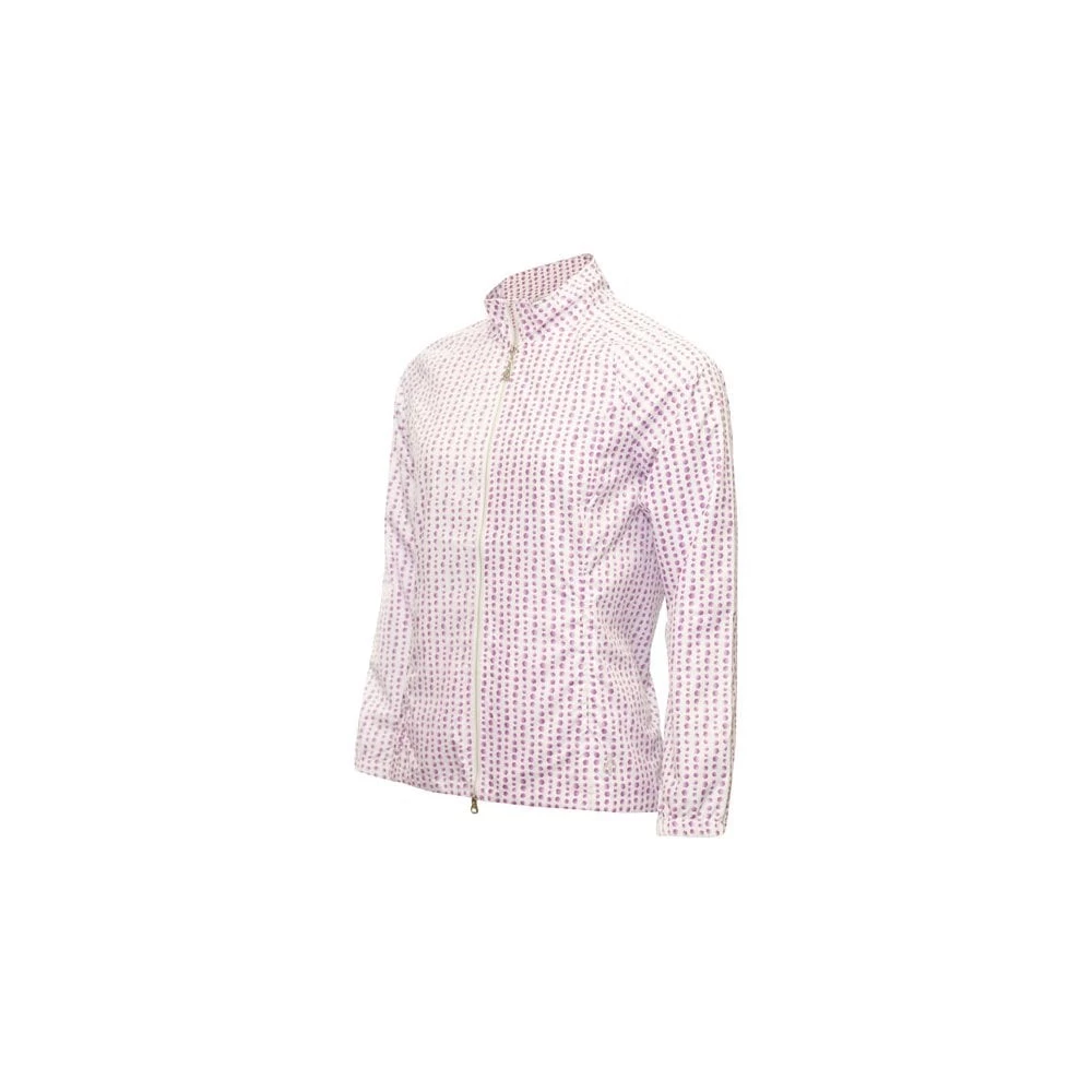 Bold and vibrant print paired with great versatility will ensure the Kayley Printed Windbreaker becomes an essential part of our golfing wardrobe this season. Lightweight and packable it easily stows away in your golf bag ready to spring into action should a rain shower make an appearance. Elasticated waist section at the back creates a more tailored shape. Product Features: Lightweight, water-resistant windbreaker jacket with all-over print Breathable mesh lining Front and back style lines and shaped back hem for more feminine fit Elasticated waist panel at centre back Exposed 2-way silver full zip with Green Lamb Swarovski crystal zip pull High zip up collar Two front zipped pockets Raglan sleeve with elasticated cuffs Lamb logo above front left hem Machine washable Fabric: 100% polyester
