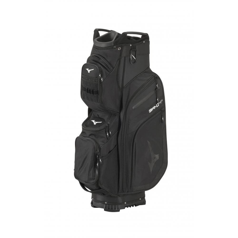 Leave nothing behind Mizuno’s maximum storage cart / trolley bag â with a staggering 20 pockets and compartments. An all-new “mission control” organizer panel makes it easy to store anything you need for quick access â from range finders to scorecards and yardage books to divot tools, all in one centralized location. With extra-large cooler pocket.