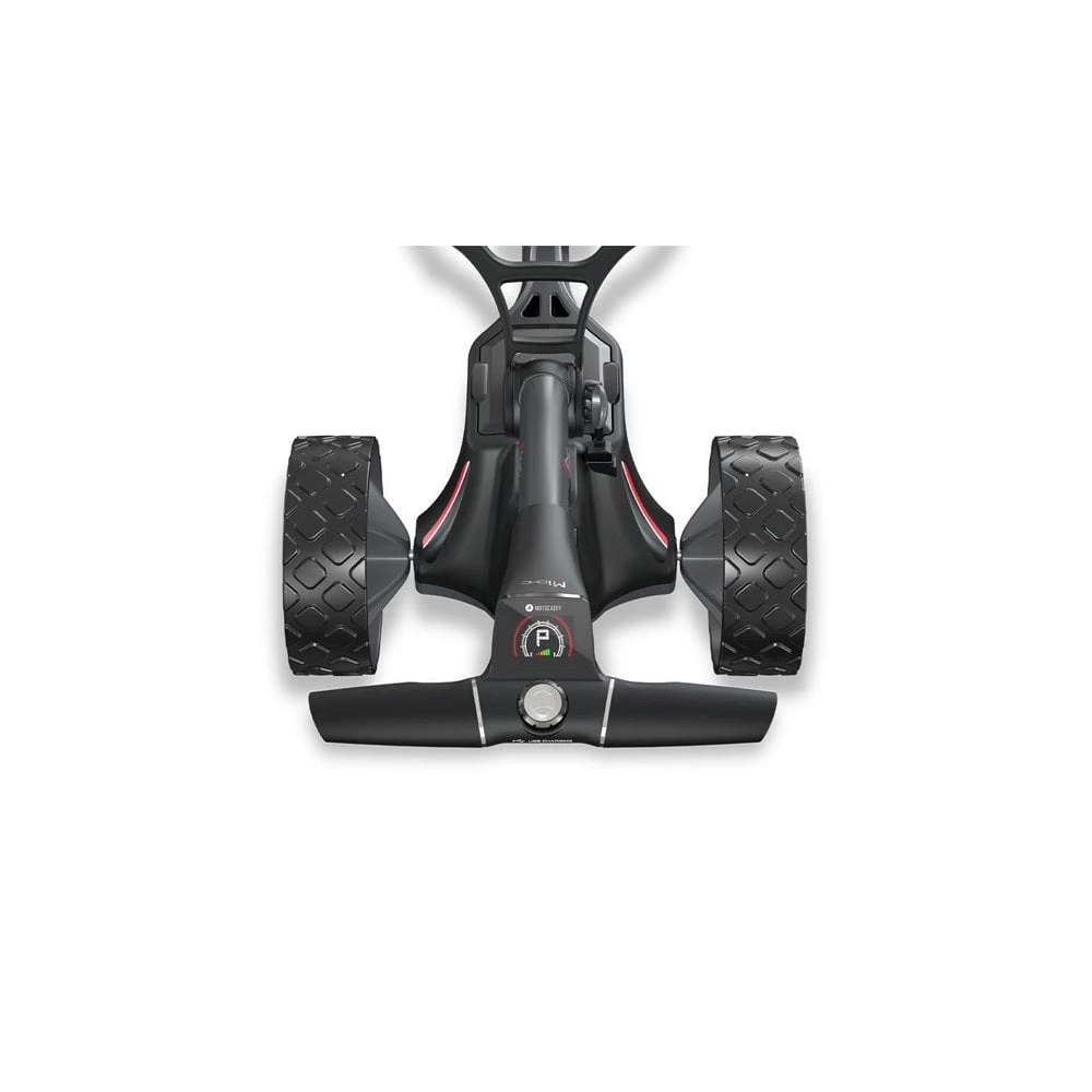 A perfect introduction to our iconic M-Series range, the compact M1 DHC is simple-to-use, without compromising on performance, game-enhancing features, or reliability. The M1 DHC’s latest high-power 28V drive system combines with a whisper-quiet 230W motor, producing unrivalled power and endurance to tackle every type of golf course. Adjustable Distance Control (ADC) technology allows you to set the M1 DHC to travel a specific distance, ideal for sending your trolley to arrive at the next tee box while you walk across the golf course hands-free, and in style. The M1 DHC also features a useful USB charging port to keep your devices topped-up during a round of golf, a stylish new inverting wheel design, and a fully-adjustable handle height. !!<>!!Refined Display!!<>!! The new 2021 M1 DHC Electric Trolley features a redesigned anti-glare LCD widescreen display, offering impressive visibility in all light conditions. The upgraded screen layout provides improved accessibility making the interface easier to navigate, helping you stay focused on the golf. Automatic Downhill Control Allows the trolley to maintain a constant speed when moving down a gradient Electronic parking brake Keeps the trolley stationary on slopes & undulations NEW Slimline all terrain DHC wheels With anti-skid tread to tackle all types of ground with ease Simple, compact-folding system Award-winning M-Series folding technology fits into the smallest car boots Next generation, High Power 28V system More powerful, efficient, & reliable than ever before NEW Anti-glare LCD widescreen display Redesigned interface for improved performance Adjustable Distance Control (up to 45 yards) Set the trolley to travel a selected distance in 15 yard increments Nine-speed settings, Speed indicator & Battery meter Stay in complete control with a quick glance at the handle display USB charging port Ideal for charging any USB powered device while you play Super-lightweight, waterproof Lithium battery IP66 water & dust rating for complete protection against the elements On board battery charging No need to remove the battery for storage, transportation & charging Oversize tubing for ultimate handle stability Thicker frame profile combines with top quality materials for unrivalled performance Innovative inverting wheels Revolutionary space-saving technology – flip the wheels to fit into the tightest spaces Convenient auto-open stand Allows the trolley to stand upright for minimised folded footprint Simple, fully-adjustable handle height Ensures the trolley is optimised for golfers of every height Powerful, whisper-quiet 230W DHC motor Quiet, exceptional performance with power when you need it EASILOCK™ compatible Securely attach your Motocaddy golf bag without a lower bag strap