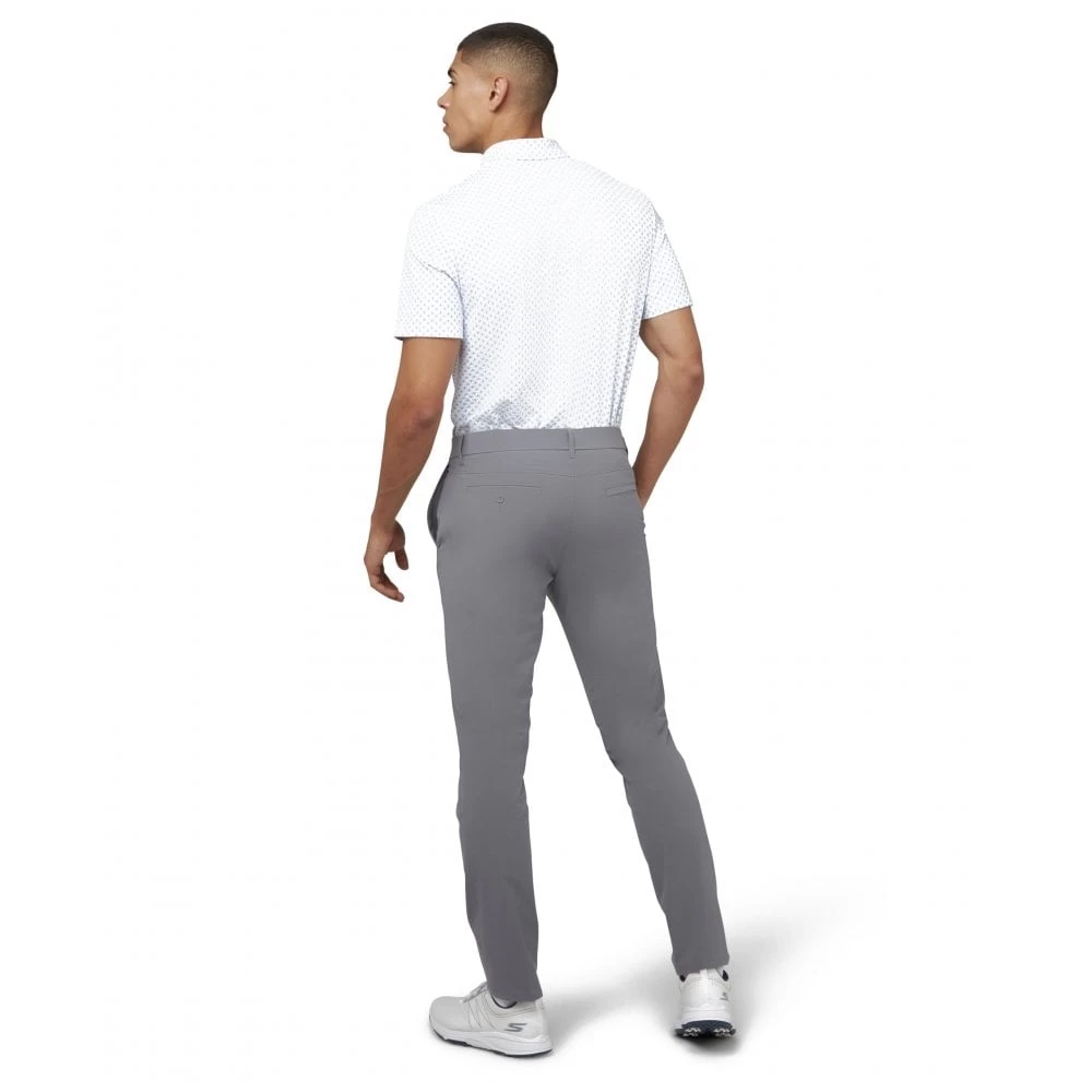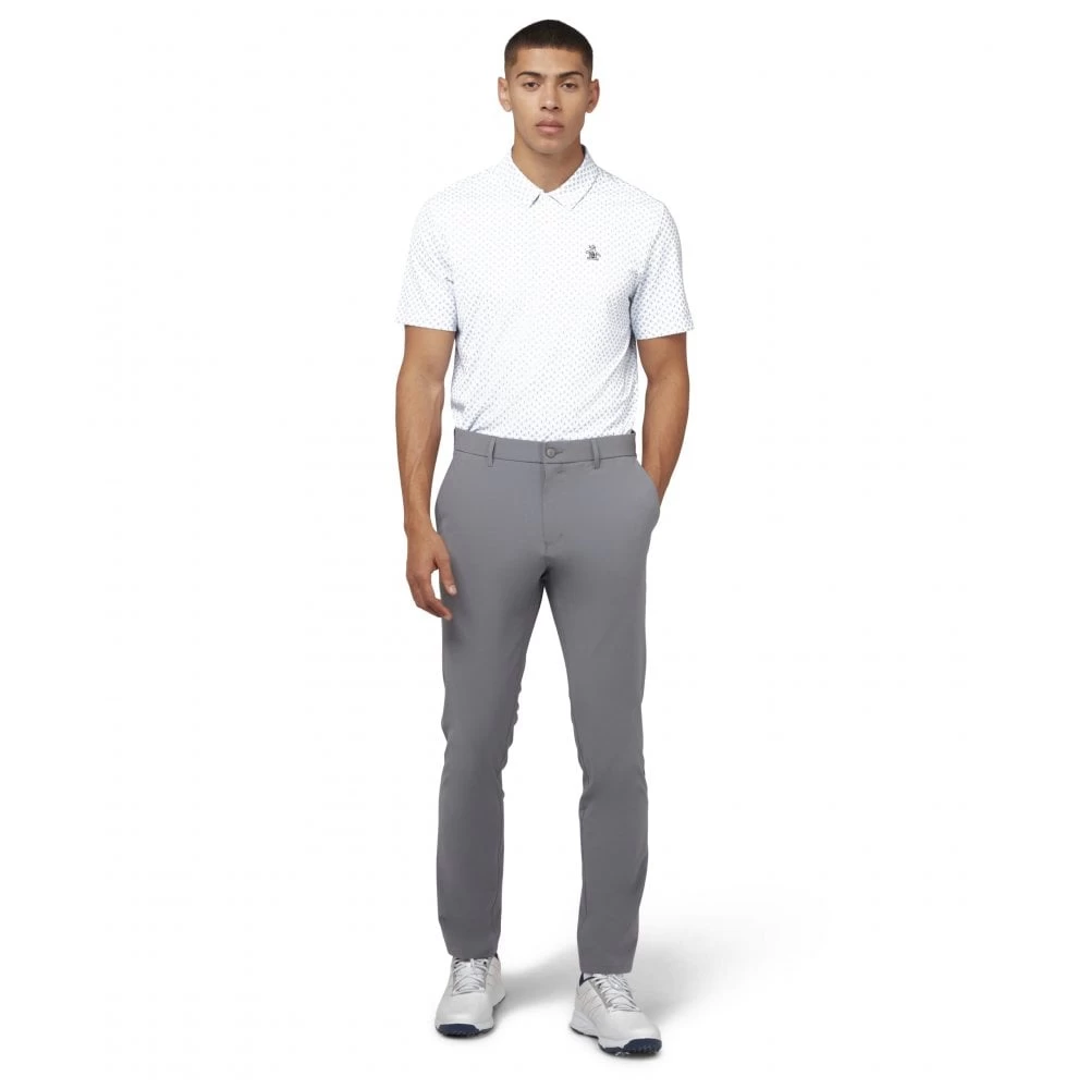 These Original Penguin men’s golf pants are versatile basics, built for performance. Durable plain weave fabrication is enhanced with stretch for comfort on and off the course. These golf pants feature moisture-wicking technology and a flat front design for lasting comfort and a contemporary silhouette. The flexible covered elastic waistband is equipped with a silicone printed gripper to keep your shirt in place as you bend and swing. An embroidered Pete logo below the left pocket adds a subtle finishing touch, and with 30% recycled polyester content,these pants are a sustainable style choice.