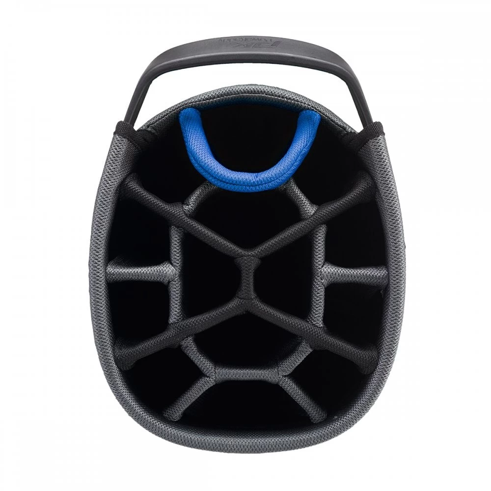 An easy lift 3 handle divider top incorporates a large integrated putter bay designed to accommodate larger putter grips whilst the 14-way divider system gives each club a place to prevent snagging whilst retrieving or replacing your club.