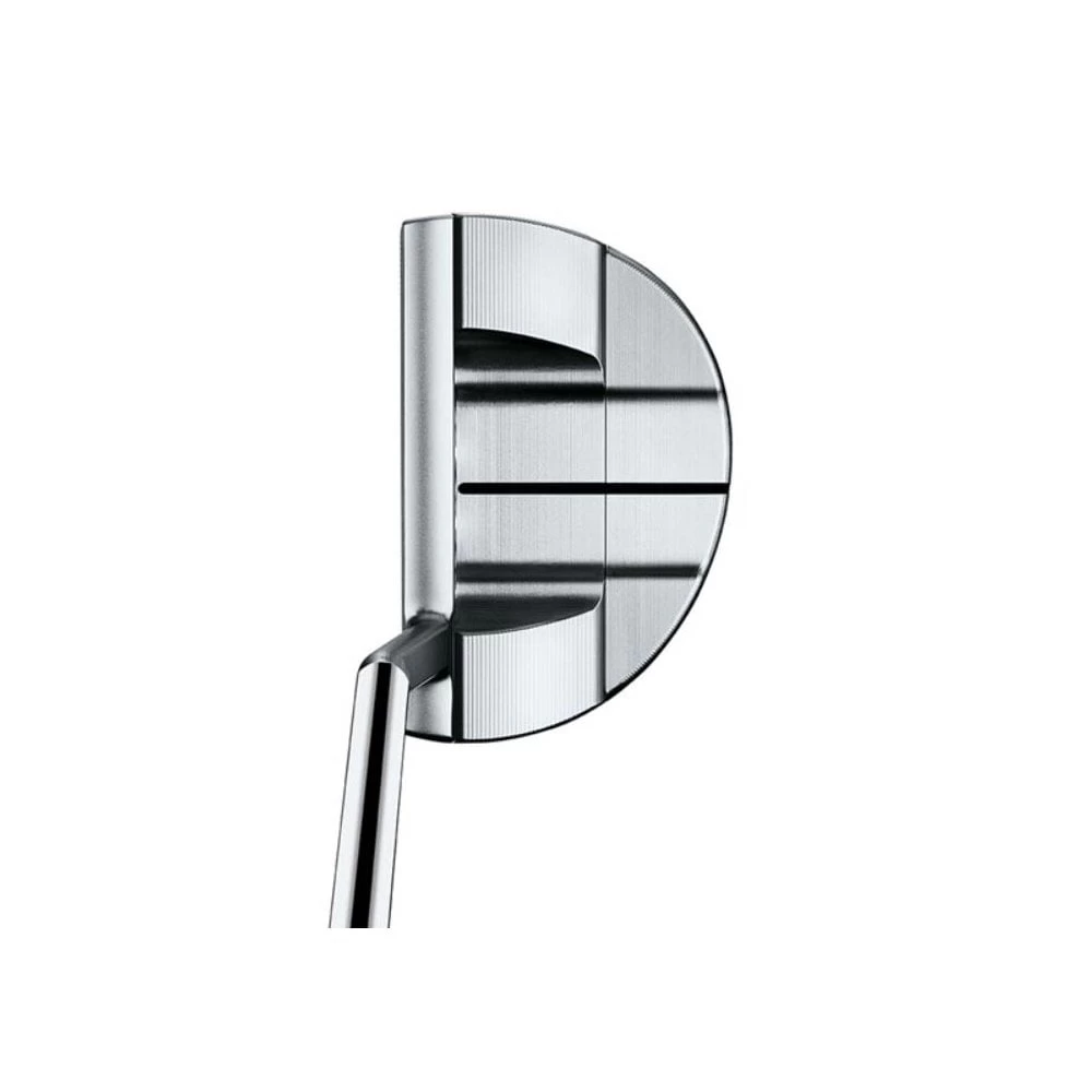 Created specifically to offer the same sleek, classic shapes preferred by touring professionals, each Special Select model has been designed and milled in the USA to the same exacting performance specifications demanded by our game’s greatest players. Curvy mid-mallet with a thinner topline and innovative new slantback neck promotes maximum toe flow with a 6061 aluminium sole plate and MOI-enhancing stainless steel sole weights. PERFORMANCE-BALANCED WEIGHTING New performance balanced weighting expands on Scotty’s use of customisable sole weights to tune putter performance and feel at all lengths by incorporating tungsten for the blades and stainless steel for the mid-mallets to produce larger sweet spots and enhance stability. SOLID MILLED STAINLESS STEEL CONSTRUCTION Returning to the roots of sound and feel, each Special Select model has been designed and milled in the United States from a block of solid 303 stainless steel for legendary performance and playability with consistent sound and soft feel. NEW PISTOLINI PLUS GRIP Each Special Select putter is accessorised with Scotty’s new Pistolini Plus grip that marries the Pistolini shape with a slightly built up lower hand profile for feel and performance. STREAMLINED PROFILES & TOPLINES With an over-arching attention to creating Tour-preferred sleeker profiles, as well as slightly thinner and flatter toplines, Special Select putters maintain traditional overall headweight, yet display notable refinements in face height, neck position, hosel depth, corner radius shaping, flange thickness and sole weight technology to sit better, sound better and perform better. SOFT TRI-SOLE DESIGN Long favoured by touring professionals for its utility when setting up to putt, Scotty incorporated into the blades his soft tri-sole design, which provides a self-soling feature at address for proper setup and an aesthetically pleasing view of the topline from the moment the putter is placed on the green. Specification MODEL RH/LH LENGTHS LOFT LIE NECK TOE FLOW OFFSET STOCK GRIP FLOWBACK 5.5 RH 33″, 34″, 35″ 3.5° 70° Slantback Near Maximum 3/4 Shaft Pistolini Plus