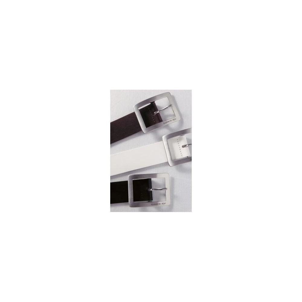¦Menâs leather belt with Glenmuir logo on buckle.